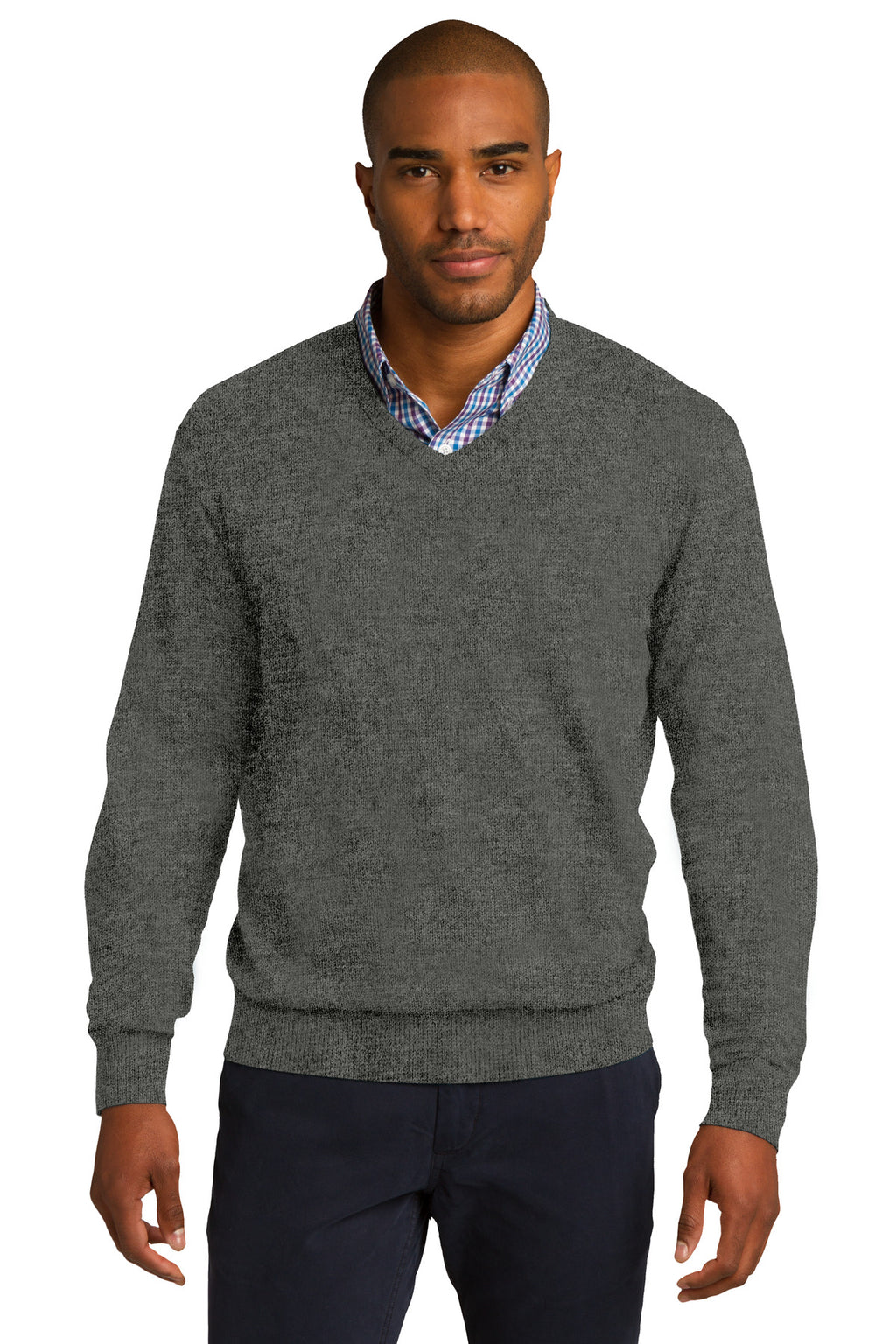 A beautiful and versatile addition to any work wardrobe, our fine-gauge v-neck sweater has fully-fashioned sleeves for strength, comfort and longer wear. | 60/40 cotton/nylon Rib knit v-neck, cuffs and hem